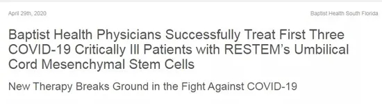 2020年疫情爆發(fā)以來(lái),多個(gè)國(guó)家均將干細(xì)胞應(yīng)用到了新冠肺炎患者的救治當(dāng)中,并相繼取得積極地臨床療效。例如,根據(jù)今年4月美國(guó)的報(bào)道,3名新冠肺炎急性呼吸窘迫綜合癥患者接受了臍帶間充質(zhì)干細(xì)胞治療,成為了首批在美國(guó)FDA緊急批準(zhǔn)條件下接受這種療法的成功研究案例。