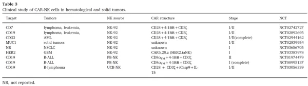 根據(jù)clinical.gov網(wǎng)站上的臨床數(shù)據(jù),已有200多項關于CAR-T細胞的研究。然而,只有9項涉及CAR-NK細胞。