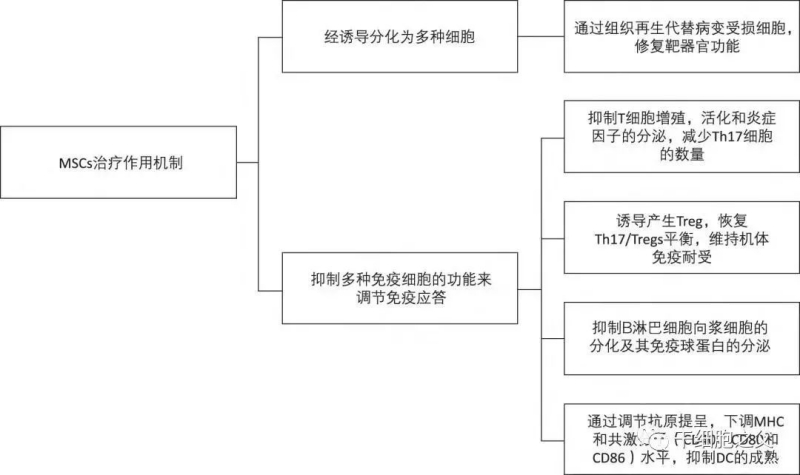 對(duì)于自身免疫性疾病,間充質(zhì)干細(xì)胞(MSCs)可以在自身免疫性疾病的發(fā)病機(jī)制環(huán)節(jié)發(fā)揮作用,主要作用機(jī)制如下: