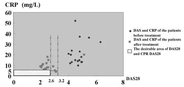 對(duì)17例受試者進(jìn)行干細(xì)胞移植,輸注1×107間充質(zhì)干細(xì)胞,隨訪4月~14月,ACR20評(píng)分受試者在睡眠、飲食、疲勞感、體力等方面有顯著改善,晨僵小于1小時(shí),疼痛腫脹的關(guān)節(jié)數(shù)減少,多關(guān)節(jié)疼痛、壓痛、腫脹明顯緩解,關(guān)節(jié)活動(dòng)度增加,病情無(wú)反復(fù)。按DAS28評(píng)分標(biāo)準(zhǔn),12例得到緩解,3例處于低活動(dòng)期。