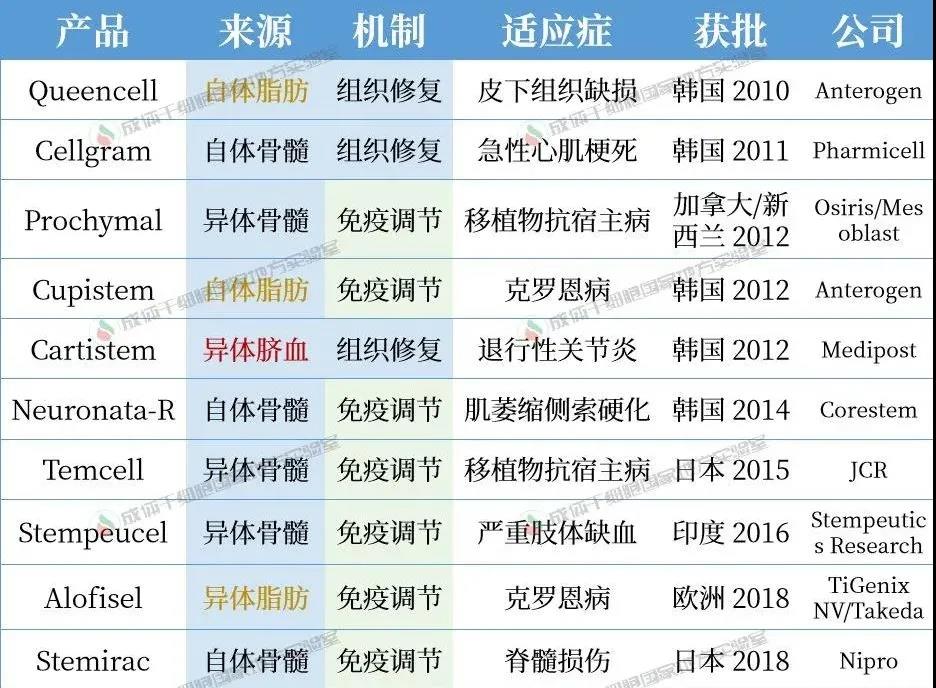 研究者將全球細(xì)胞治療產(chǎn)品分為三類(lèi):免疫細(xì)胞(11種)、干細(xì)胞(21種)及其他細(xì)胞(不在本文討論)。